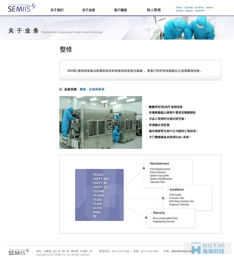 SEMIIS是海淘科技做的一个五金机械官方网站建设案例,SEMIIS 以专于干蚀刻的长久经验和技术为基础,提供专业和系统工程技术。 在一直需求新技术的半导体市场,SEMIIS 将基本视为最重要和尽力去为客户建议新途径