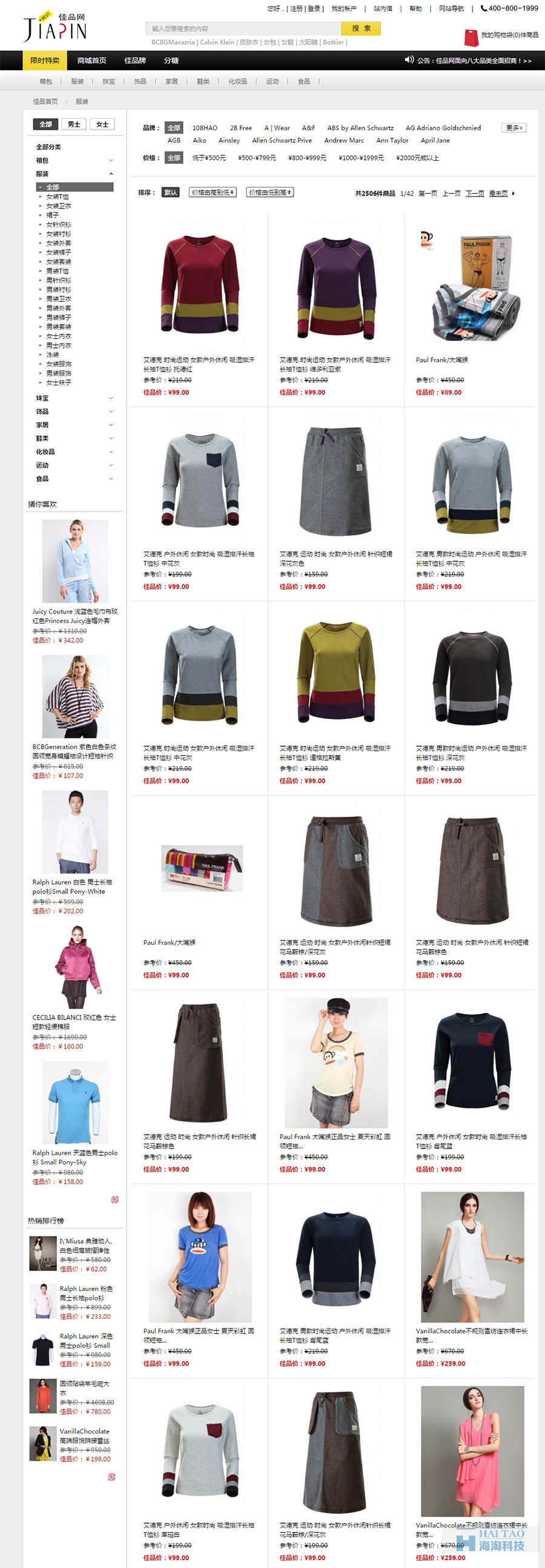 由于佳品网是时髦、高贵的品牌,因此,海淘科技在佳品网建设的设计风格上定义的时选择的显眼对比的黑白两色,大片留白加上极少黑色,在佳品网放止其特色服装时,时尚感瞬间展现,加上充满特色的风情拍摄,将佳品网品牌的高贵感也极致体现出来。
