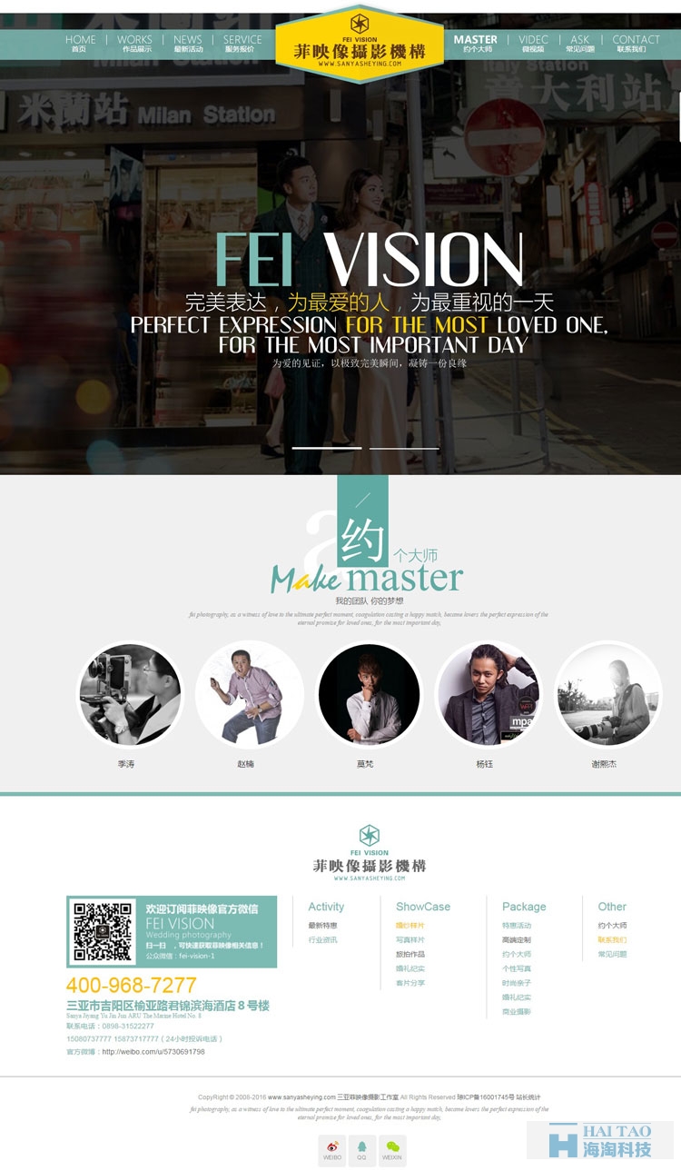 网站建设案例:菲映像婚纱摄影工作室由著名商业摄影师,中国摄影家协会会员季涛(子兮)老师领衔,颠覆传统影楼婚纱摄影的固有拍摄模式,让每一位新人都能体验到明星广告大片的拍摄快感。菲映像摄影主创团队汇聚国家级专业摄影协会精英,极具非凡的想象力和一双善于发现美的眼睛,运用光影、服装、场景、构成以及商业摄影细腻写实的拍摄手法