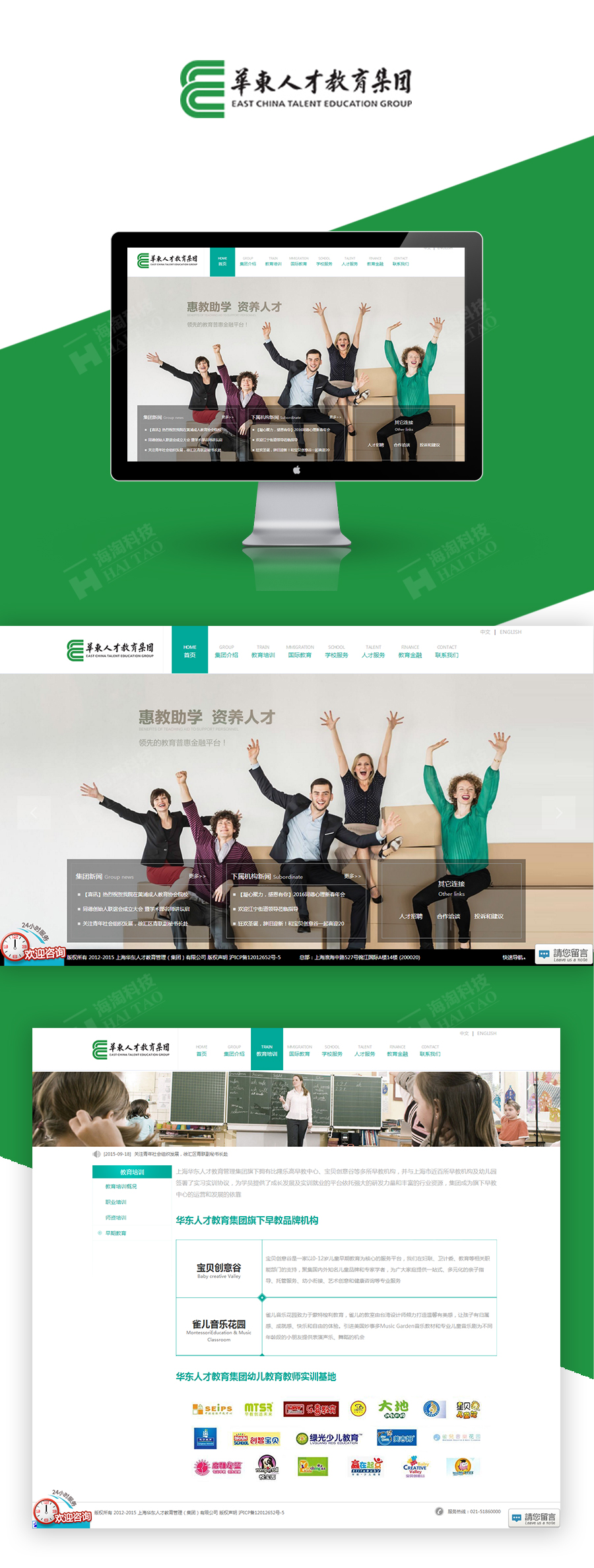 网站建设案例:上海华东人才教育管理(集团)有限公司(EAST CHINA TALENT EDUCATION CORPORATION,ECTE)是提供国际化教育资源服务和高端教育培训的综合性教育科技集团,具有正规教育、移民、人力资源服务资质和外国专家聘请资质,集团旗下拥有上海华东人才专修学院、上海华东人才科学研究院等教育、科研机构和教育培训公司、教育科技公司等专业服务公司,原国家人事部常务副部长程连昌教授为华东人才教育集团提名。华东人才利用互联网技术驱动传统业务转型,集团新兴业务涵盖“教育、游学、人才”等领域,打造一站式的大众化国际教育资源服务平台。