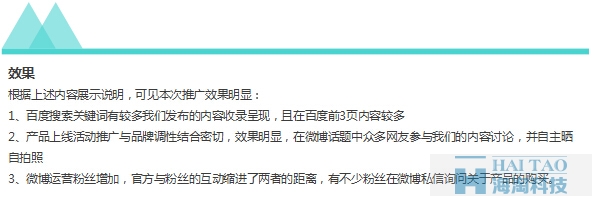 1、借助互联网平台,结合百度相关产品、新闻、社交媒体等,提高品牌在网上的信息收录情况、在网友中的品牌知名和信誉度。