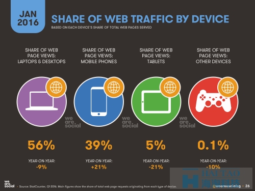 最近We Are Social发布了最新的“2016年数字报告”,综合调查了全球互联网、社交和移动的使用情况。