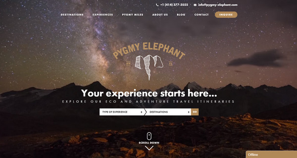 Pygmy Elephant 是一个旅游机构,网站为用户提供了逼真而难忘的视觉体验。其中涵盖的多媒体类型丰富,通过丰富的视觉体验鼓励游客踏上旅程。网站使用了视频背景,漂亮的图文混排,精致的交互细节。