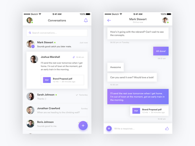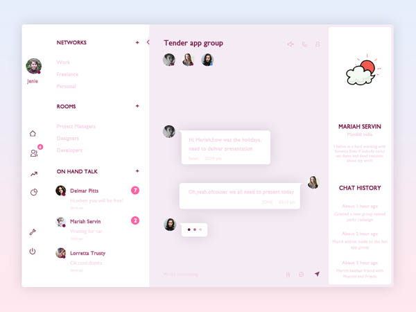 今天要和大家分享的这40个聊天界面设计欣赏,这些UI界面有卡通元素的设计、可爱的地图指标,线条的结构设计、接听电话的按键设计以及聊天的界面设计等等。点进来看一下,肯定有适合你需要的UI设计元素,为你提供新的灵感。