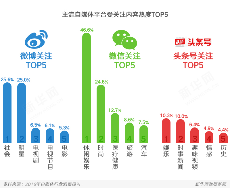 从微博、微信公众号到客户端运营号、直播平台,自媒体行业的发展愈发多元化。在平台方面,直播类平台近两年发展迅猛,受到用户的青睐;在内容方面,自媒体平台用户更关注娱乐、时事类的相关内容。