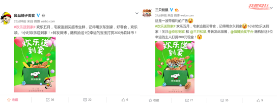 不仅如此,当天蒙牛真果粒、香飘飘、露露、良品铺子等各大可在超市内购买到的快消零食品牌等也纷纷发布“欢乐送到家”主题海报,配合联动,帮助京东到家实现了线上线下霸榜刷屏!