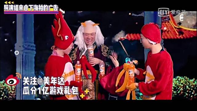 美年达与全国最大的游戏平台合作,消费者购买产品后,只要扫描瓶盖里的二维码,就能百分百中奖,获得美年达赠送的游戏礼包。结合“开盖有奖”的诉求,《奇葩说》为美年达制作了龟丞相的魔性小片,当龙王大喊“开盖有奖”的时候虾兵蟹将跃跃欲试的要开龟丞相的盖,最后神转折,原来是开美年达的盖子,“开盖有奖”。小片魔性洗脑深度贴合了美年达“开盖有奖”活动传播的诉求。