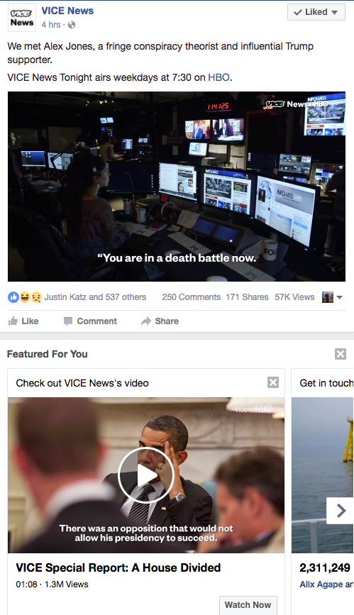 这一年社交媒体平台在视频直播上做文章。Instagram发布了Instagram Stories and Live,而Twitter推出了NFL球赛和其他大型活动的现场直播。Facebook除了在主导航添加了“视频”新标签,还推出了Facebook直播和视频广告。(当Facebook加上“视频”重新设计整个导航时,视频直播这一趋势势不可挡。)
