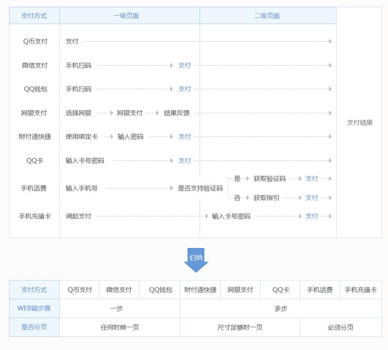 穷举所有支付方式步骤,得出步骤与页面的关系的表格