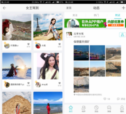 由于在外是几个产品中唯一一个专注于旅行社交的产品,它可以将分享内容置于整个产品的首屏,通过底部tab导航条实现其他的转换,在这点上它比其他产品方便了不少。