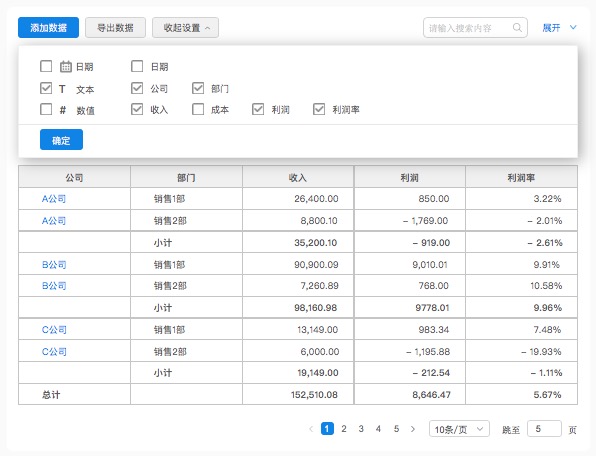 更精准地计算。对于大数据量的表格,数据的精准度非常重要。比如根据提供的精准度要求,定义展示数据的小数位数。