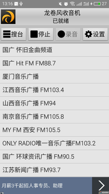 这种产品现在相对较少,只剩下一些少数只提供简单功能的产品,例如: 龙卷风收音机,龙卷风收音机回录下每天不同电台的内容,然后为用户提供收音机内容的回播,主要收入来源于底下滚动的广告条。