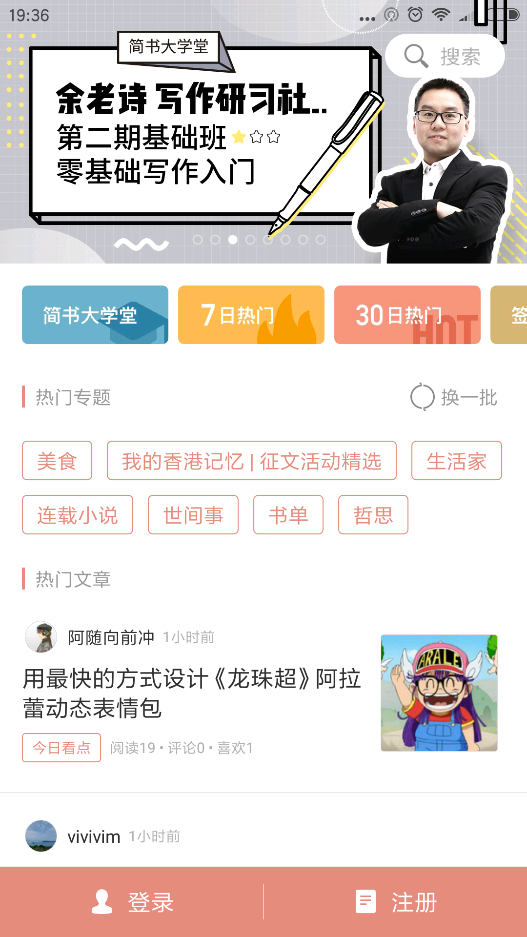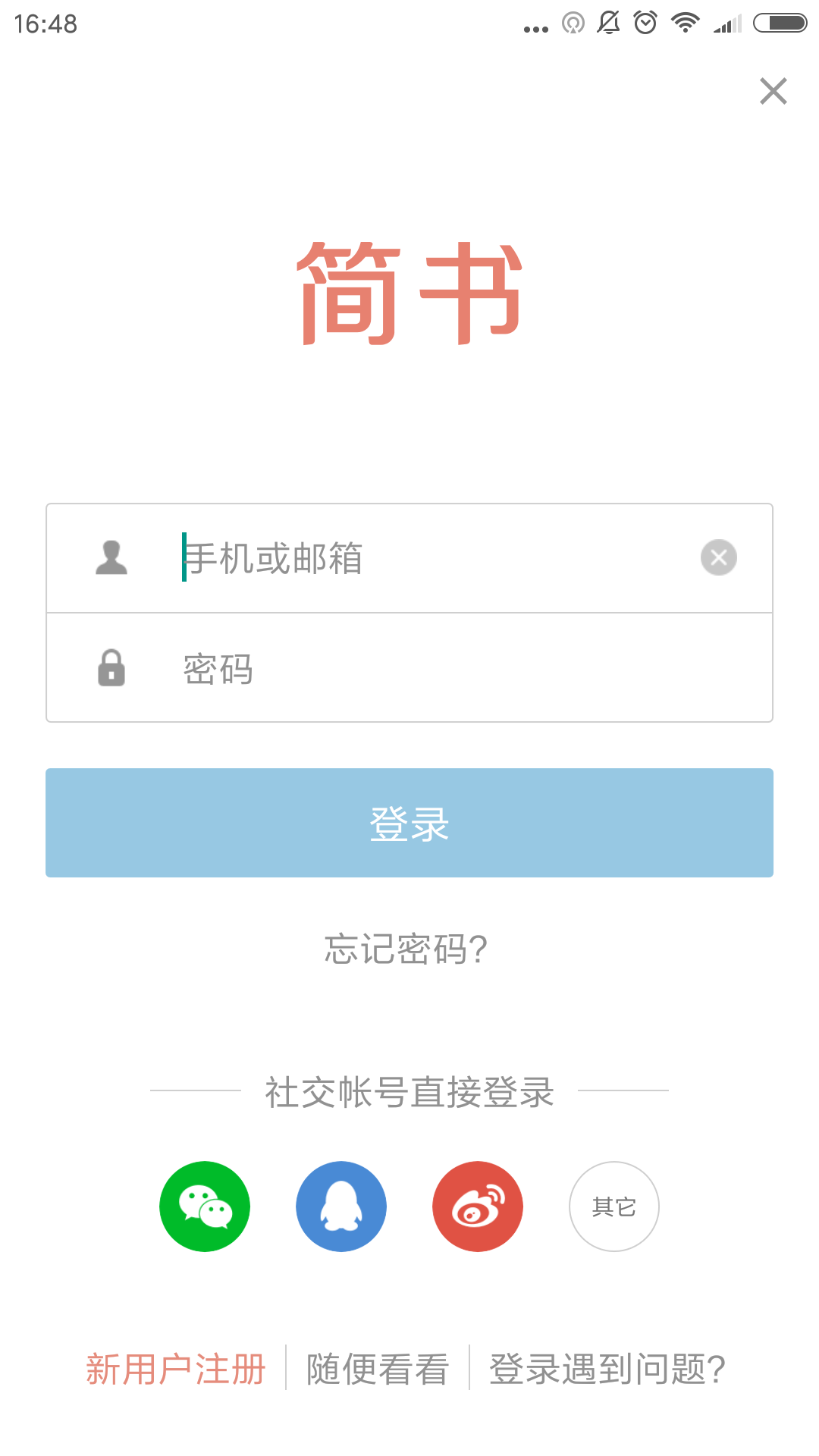例如简书,在简书,不登录,除了无法使用点赞或者收藏等功能,基本不影响你对阅读文章功能的使用,但是如果你想要使用“写文章”的功能,则必须要进行登录与注册。
