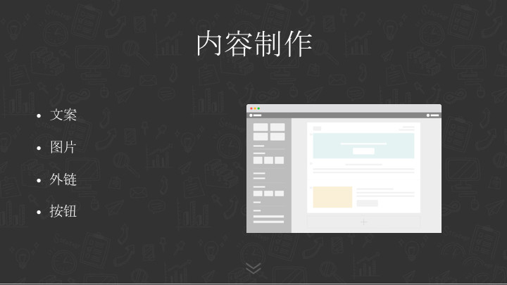 我们来看第一步~策划,基于公司的业务场景会有不同的营销目的,可分为用户召回,引导注册,内容推送,活动报名%%,例如是一家电商企业,可发送新品的资讯,达到老客户回购的目的;或者是一家知识型的软件公司,推送精选后的博客内容,取得用户的信任,又或者是一家教育机构,推送免费试听课程,获取用户报名信息。