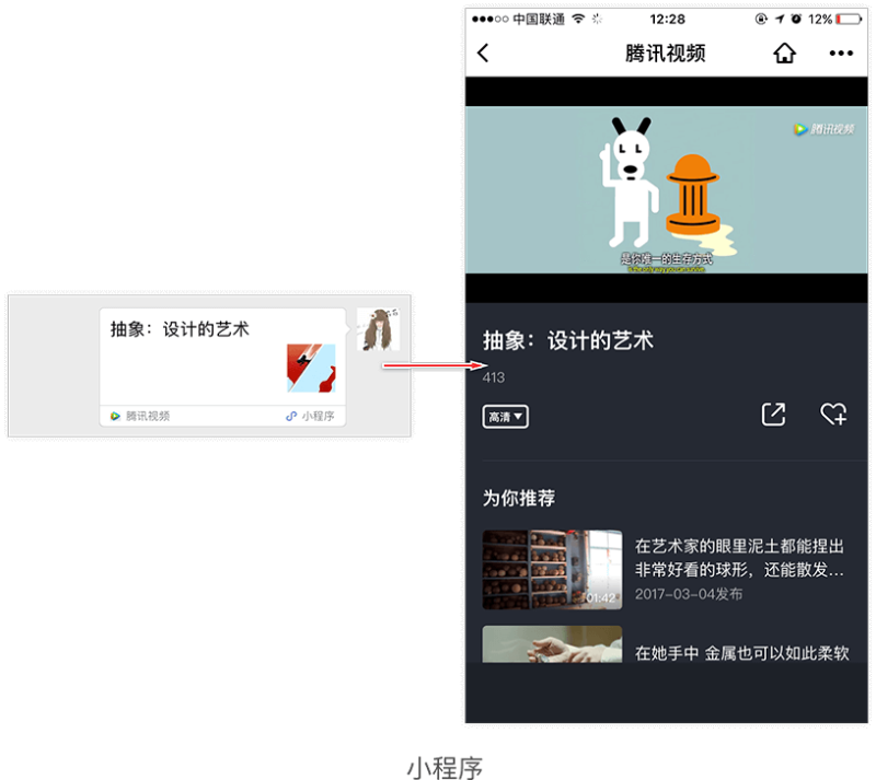 2017年1月9日微信小程序如约而至,让应用「触手可及」,让用户在微信中使用其它应用的功能时有了可以媲美原生APP的流畅体验。因此一些APP紧跟脚步,在应用中分享内容给微信好友时会以小程序的方式进行分享,让接收方能够无缝衔接,直接打开对应的小程序进行购票或看视频等操作。