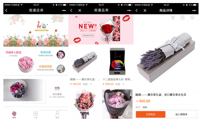 拥有线下服务门店企业可以借助小程序将线下的流量转化到线上,打通线上线下服务融合,如之前提到过的最典型的餐饮商户,中小型快餐店、鲜花店水果店等可以借助即速应用这类小程序开发工具开发简单的餐饮小程序,线下扫码点餐,线上支持外卖配送。服装行业可以使用小程序实现线上线下同时售卖,旅馆可以使用小程序完成线上预订。