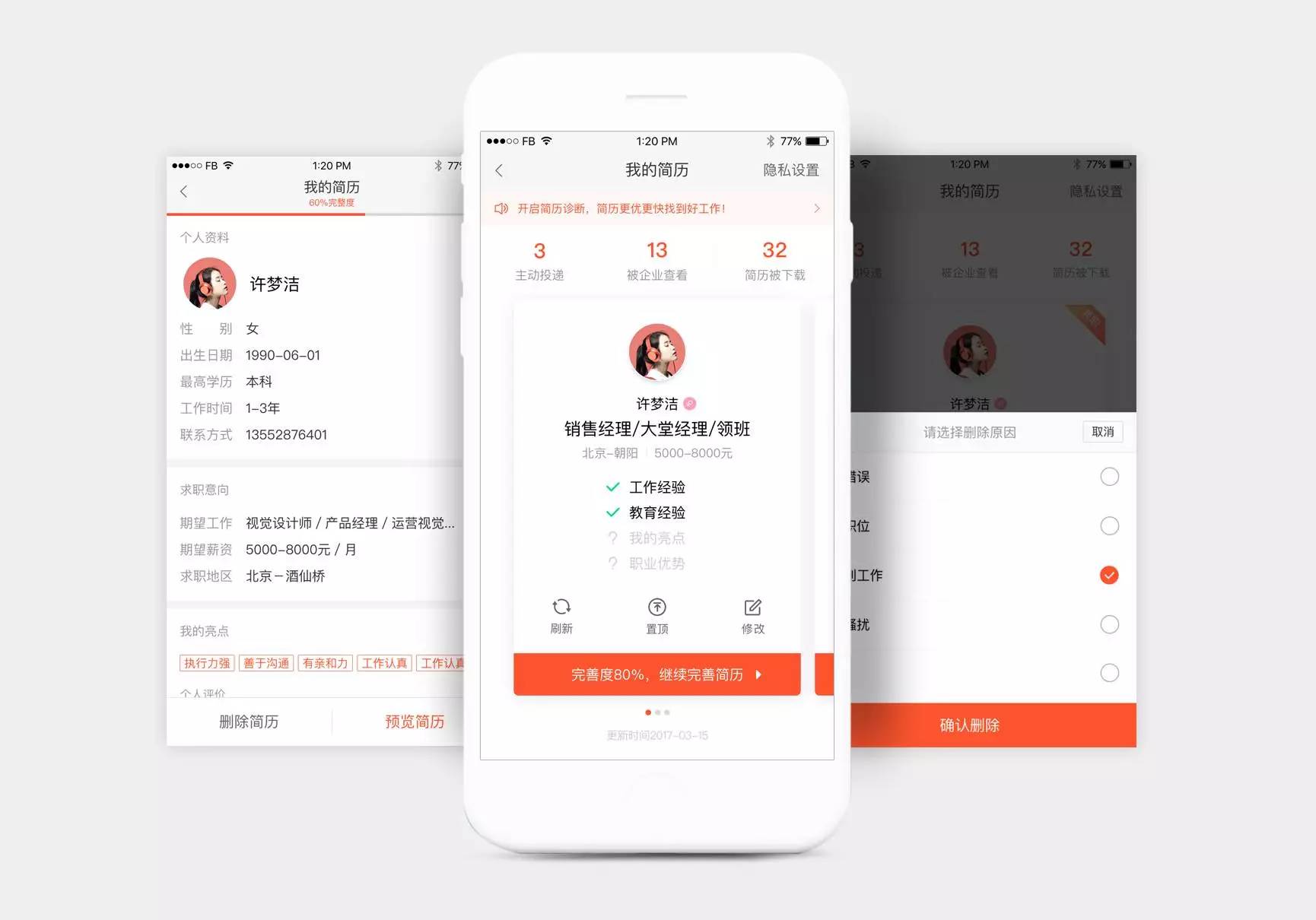 完整的简历不仅能够在企业面前更全面的展示自己,提升通过率,同时也有利于平台为用户推送更加匹配的职位,提高简历的丰富度是我们的重要方向,因此,引导用户进行简历完善也是此次改版的重要目标。