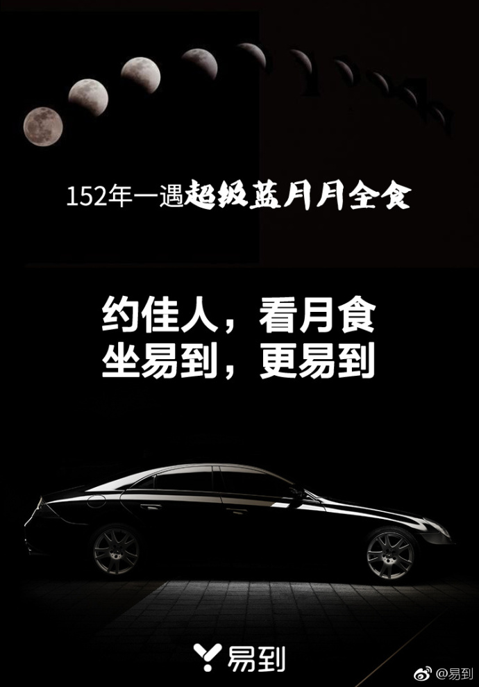 #一起去看月全食#【时隔152年"#超级蓝月月全食#"再现夜空】约个好地儿,坐易到专车,易起去看月全食~今夜,不能错过!你准备好了吗?