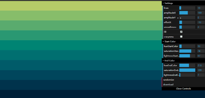 这是我在 CodePen 社区上偶遇的一个生成器,虽然它只是工程师 Ben Matthews 的一个编程练习,但我们可以利用它生成各种各样的炫彩背景。毫无操作可言,点击鼠标就随机生成一张图,就这么简单粗暴。