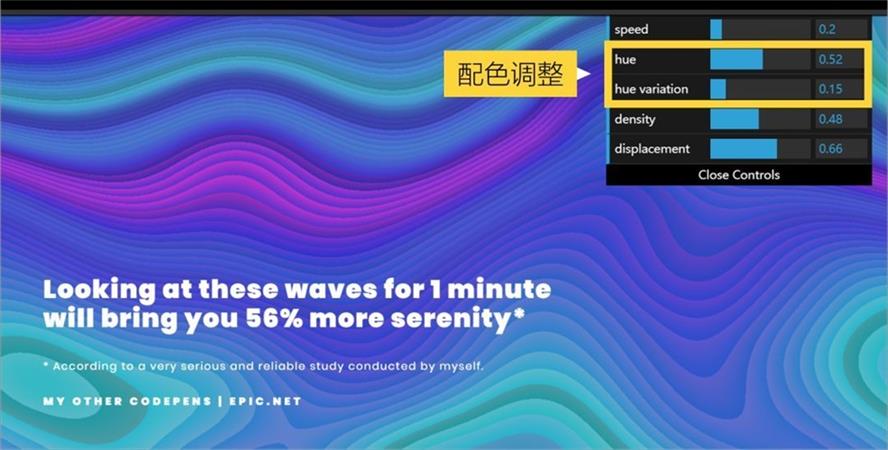 看这不正经的网址就猜到,这又是 CodePen 上另一位大佬的编程练习。他说盯着这些流动的渐变层看一分钟就会有凝神静气的奇效,但为什么我越看越骚动。