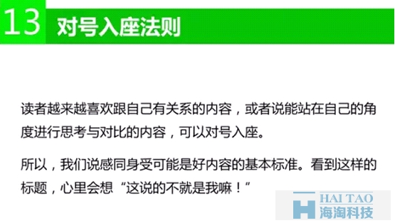 这个法则会让很多人有代入感,比如星座、地域等,比如朋友圈里经常有文章和巨蟹座有关的,就会转发,有的人甚至转发相关的人。再比如说上海好,上海人就会自发的转起来,同时,这也是很多人喜欢研究的东西,投其所好未必不是标题优化的方法之一。